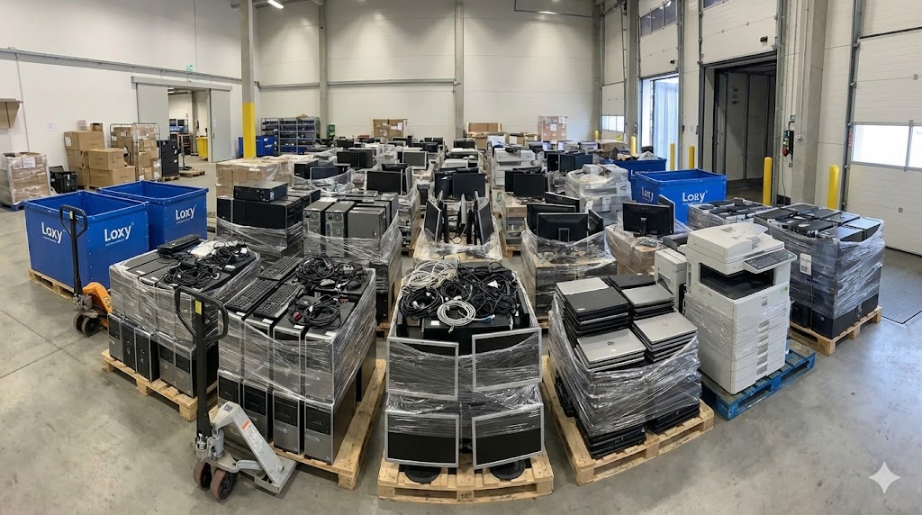 Loxy prend en charge l'enlèvement sécurisé de votre parc informatique usagé grâce à une collecte sur site. L'entreprise garantit un effacement sécurisé des données (via des logiciels spécialisés ou une destruction physique), un tri rigoureux des matériaux et une traçabilité complète. Cette traçabilité inclut des bons d'enlèvement, des certificats et des BSD, tout en respectant les réglementations D3E.